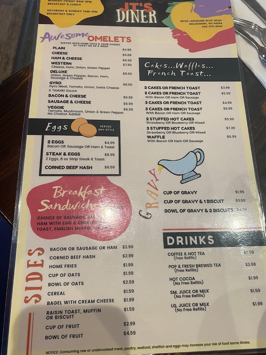 J T's Diner - Willoughby, OH Menu